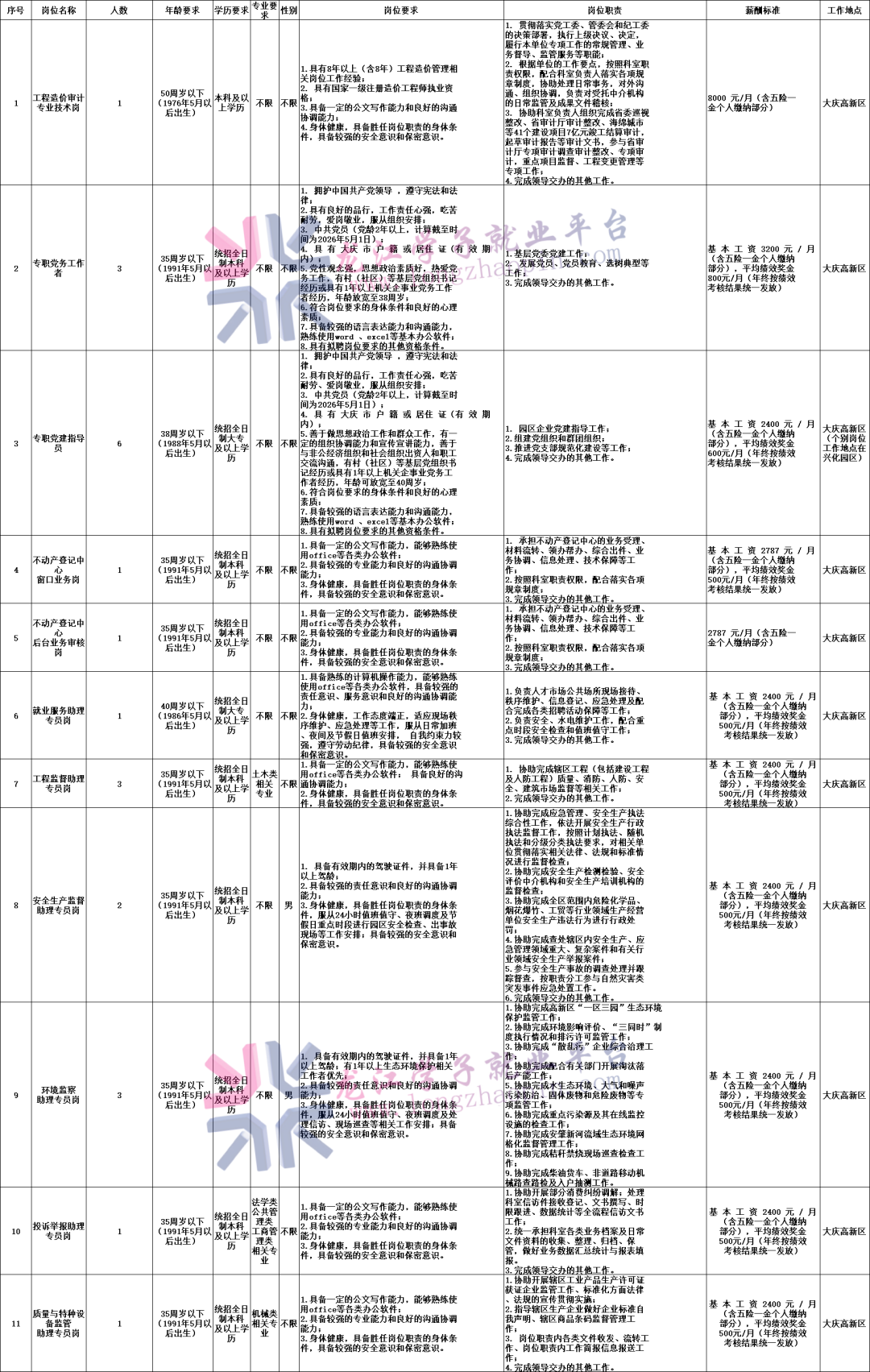 4.具备适应岗位要求的身体条件及岗位所需的其他条件。(二)岗位具体条件具体招聘岗位、人数、条件等情况详见《大庆高新区公开招聘劳务派遣制人员岗位计划表》(附件1)。