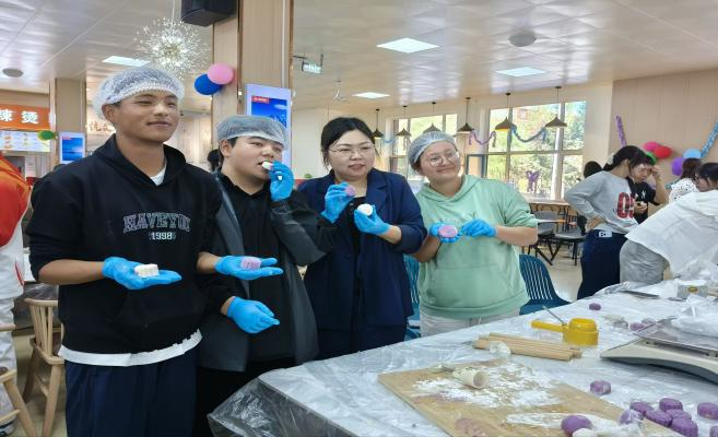 9月“舌尖上的庆师”美食工坊活动期间,文学院积极响应学校号召,组织学生参与美食制作。师生共同开展月饼、饺子制作,采用“理论讲解+现场示范+分组实操”的模式,在师傅指导下,学生不仅掌握了基础烹饪技能,还在劳动中体会到乐趣、感受到饮食文化的魅力,提升了团队协作能力。