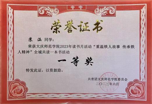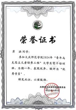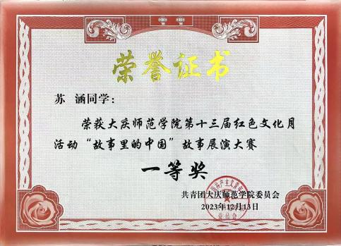 编者按:庆师校园里,有这样一群优秀青年学子。他们传承大庆精神(铁人精神),践行铁人特质,在书山学海中步履铿锵,在青春赛道上奋勇争先;他们深耕学业、躬身实践,既是求知路上的追光者,也是责任担当的行动派。他们就是2024—2025年度国家奖学金获得者。今天,让我们一起走进文学院苏涵的故事,领略卓越风采,汲取奋进力量,共赴青春征程。